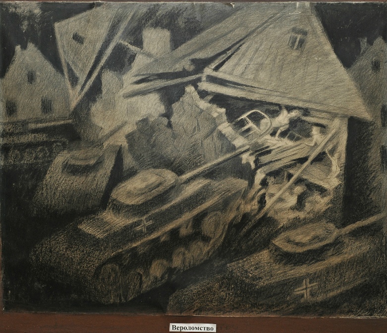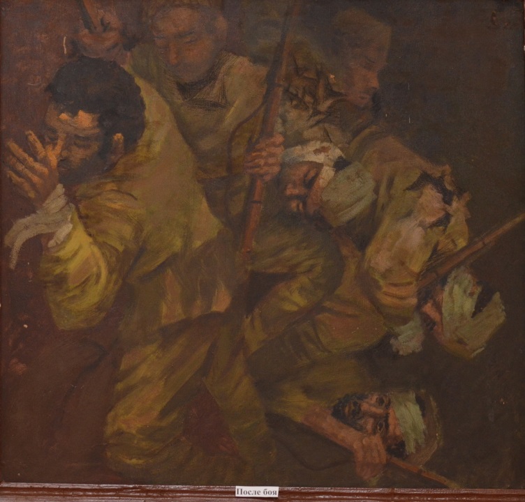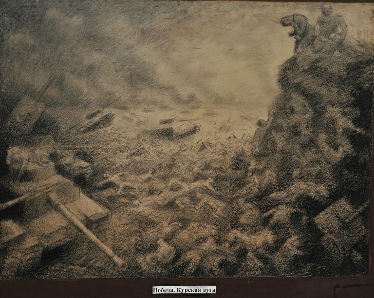 Его самого душили слезы, когда с небрежно написанных набросков или законченных картин на него смотрели полные отчаяния и боли боевые товарищи, которые вместе с ним шли в бой и погибали.