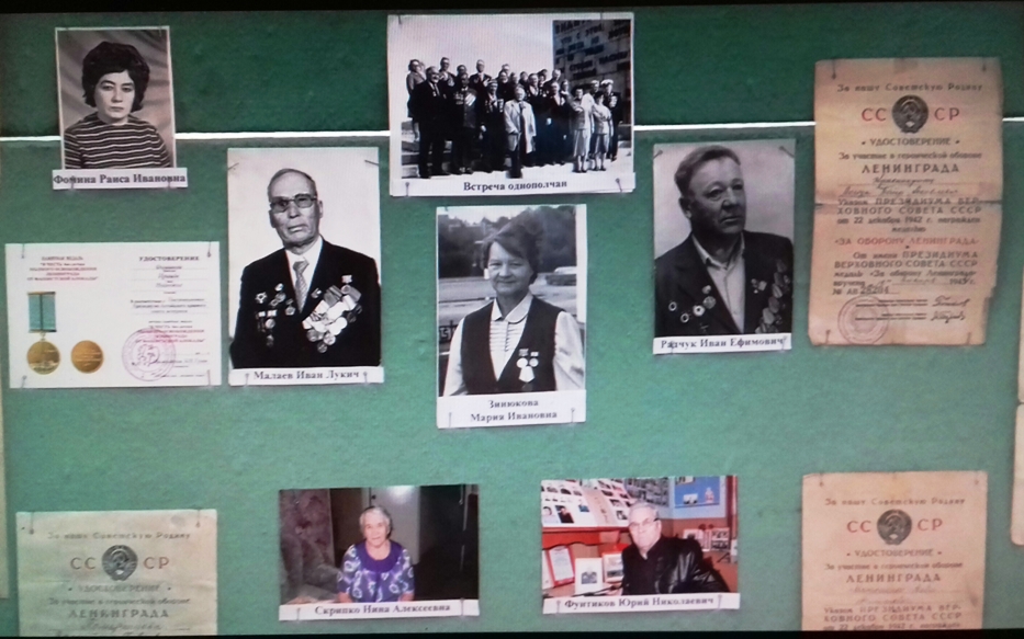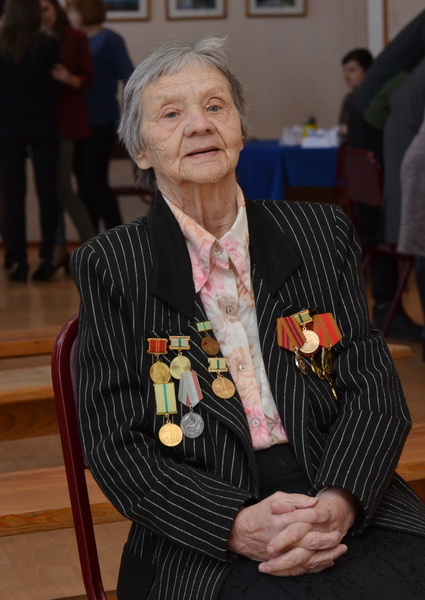 Мария Ивановна имеет награды: Знак «Жителю блокадного Ленинграда», юбилейные медали в честь Победы в Великой Отечественной войне, «За долголетний добросовестный труд», «Ветеран труда». Ребята посмотрели фото и видеоматериалы, прослушали видеозапись воспоминаний Марии Ивановны, из которой узнали о трагическом детстве юной блокадницы. О военном времени ей вспоминать тяжело, до сих пор она не может вспоминать о них без слёз. Но она не в обиде за прошлые лишения, ведь они закалили её физически и духовно. «Когда началась блокада, мне было всего восемь лет. Все эти дни я хорошо помню, но больше всего в памяти осталось чувство мучительного голода. Родилась Мария Ивановна под Ленинградом в поселке Княжево в 1933 году. Здесь и застала ее война. Семью, как и других жителей, эвакуировали в Ленинград. В августе начались занятия в школе. Мария пошла тогда в первый класс. Занятия решили начать раньше до наступления холодов. Кроме того детям в школе обеспечивали горячее питание. Один раз в день давали порцию супа из жмыха. В сентябре Ленинград оказался в кольце блокады, закончились запасы продуктов, и наступил голод. Вскоре заболела и умерла мама Марии Ивановны. Особенно тяжело было зимой, – с дрожью в голосе говорит она. – Тогда в городе не было ни воды, ни света, ни тепла, ни еды». Казалось бы, на протяжении всей блокады люди жили в постоянном страхе, но Мария Ивановна на всю жизнь запомнила самые страшные моменты своего детства. «Непроходящим было ощущение постоянного голода. Весной, как только появилась первая зелень, съедали всю траву и листья на деревьях. Получишь по карточке паек хлеба, разделишь его на три кусочка – завтрак, обед и ужин, – Мария Ивановна снова погружается в те страшные мгновения. – Этот кусочек нюхаешь, и таким он казался вкусным, тогда даже не верилось, что когда-нибудь я буду есть хлеб досыта. И тот день, когда нас вывезли из Ленинграда, не забуду никогда». Уже после прорыва блокады под жестоким обстрелом фашистов они плыли на торпедном катере в сильный шторм по Ладожскому озеру. Сначала семья попала на станцию Каргат Новосибирской области, откуда на повозке, запряженной быками, их отвезли в татарскую деревню. По дороге в Сибирь, умерла бабушка и младший трехлетний брат Володя. Так что до места добрались лишь отец Иван Абрамович с Марией Ивановной и братом Виктором. Мария Ивановна считает, что рассказывать подрастающему поколению о тех страшных, трагических днях обязательно надо, для того, чтобы вновь не повторилась такая трагедия…
