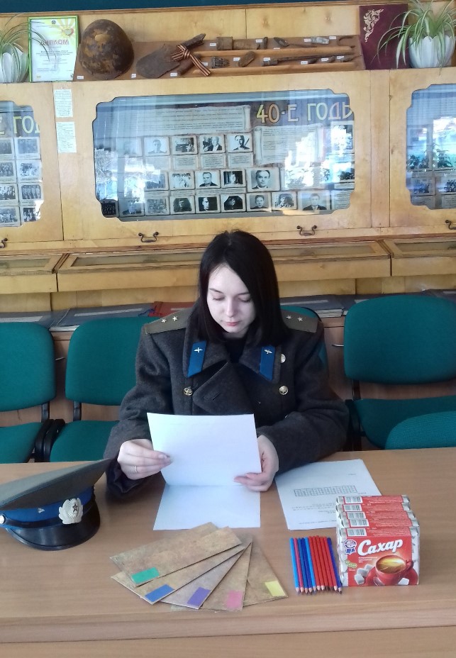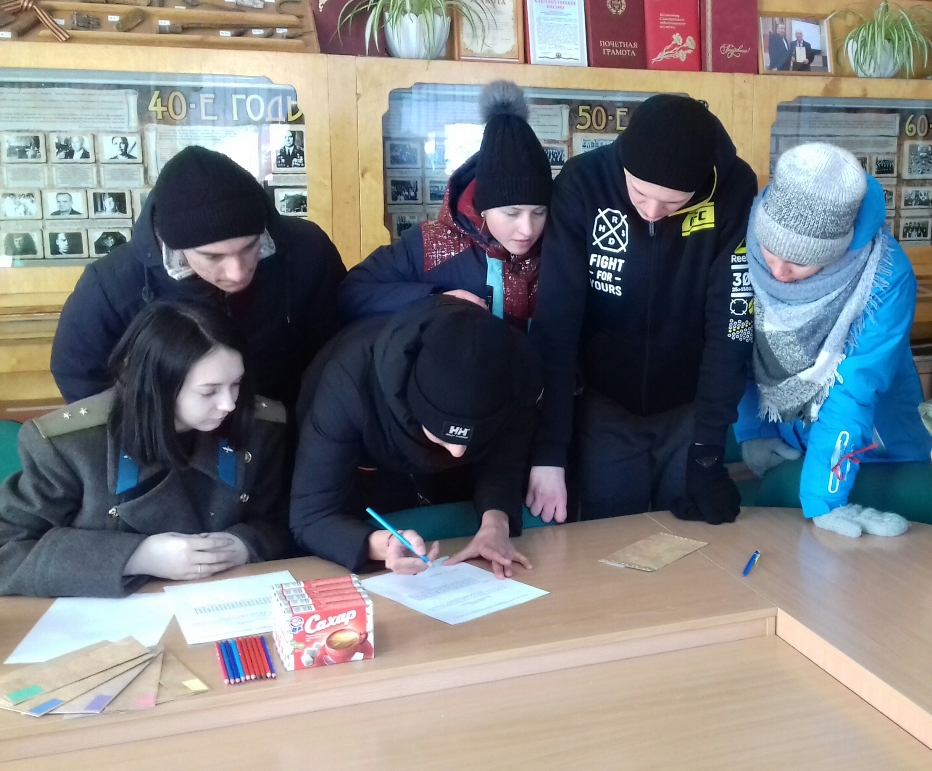 Станция «Госпиталь»… 29 января в Славгороде состоялся городской историко – патриотический квест «Студент в годы войны», посвященный 75-летию победы в Великой Отечественной войне. По замыслу организаторов, команды, участвующие в квесте, должны были пройти шесть станций, которые имели непосредственное отношение к событиям Великой Отечественной. Так как в годы войны в здании Славгородского педагогического училища находился госпиталь, то одна из станций находилась непосредственно в музее педагогического колледжа, где участников игры ожидал волонтёр, выдававший задания, запечатанные в конвертах.