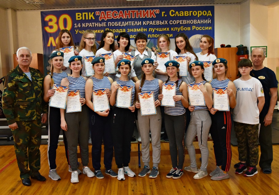 На базе центра военно – патриотического воспитания «Десантник» прошла военно – патриотическая игра под названием «Девушки во время войны», посвящённая 75 – летию Великой Победы. В игре участвовали две команды: команда девушек – курсанток военно – патриотического клуба «Десантник» (руководитель А.А.Лантушенко, инструктор НВП) и студентки клуба «Поиск» педагогического колледжа (руководитель О.А.Стрельникова, руководитель музея СПК). Перед игрой девушки вспомнили важнейшие сражения, великих полководцев и героизм советских солдат и тружеников тыла. В ходе игры девушки провели разборку - сборку автомата Калашникова, пистолета Макарова, снаряжение «магазина», соревновались в меткости («Дартс») и стрельбе из пневматической винтовки, в стрельбах в электронном тире и различных эстафетах. Мероприятие продолжалась почти два часа! После напряжённой игры девушки собрались за праздничным столом, чтобы обсудить итоги игры, удачи и неудачи. Все остались довольны итогами встречи и её результатами. Встреча была завершена вручением Благодарностей от имени директора ВПК «Десантник» В.А.Сычёва всем участницам военно – патриотической игры «Девушки во время войны». Информация о мероприятии опубликована на официальном сайте города Славгорода в разделе «75 лет Великой Победе». Фоторепортаж о мероприятии