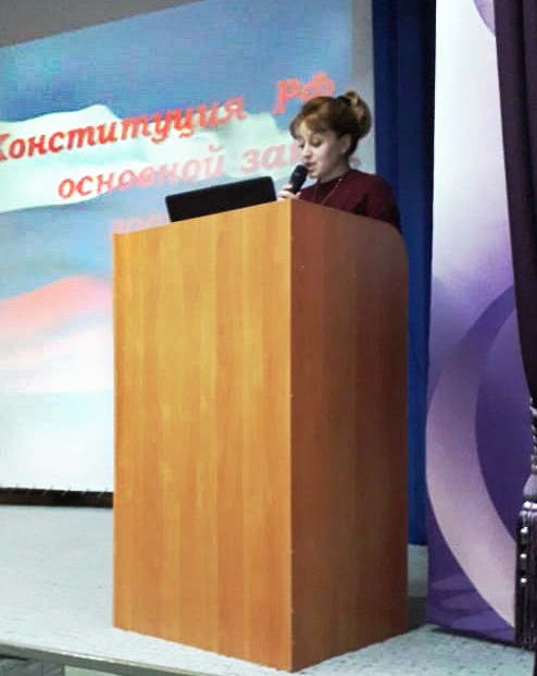 Закон государства В колледже прошли мероприятия, посвящённые Дню Конституции. На классных часах студенты расширили свои знания о Конституции. Конституция РФ - основной закон нашего государства, наделённый высшей юридической силой и правовыми полномочиями. Она определяет основы политического, экономического и правового устройства России. Ныне действующая Конституция Российской Федерации была принята в 1993 году 12 декабря в результате референдума. Стрельникова Ольга Александровна провела серию интеллектуальных правовых игр для студентов четвёртого курса. Четыре группы соревновались в своих знаниях. Хорошие знания по правовой тематике показали студенты 42 группы, блестяще справившиеся со всеми заданиями! К тому же, студенты играли в полном составе группы! Немного уступили им в знаниях студенты 46 группы. Жюри, подводя итоги игры, зачитало ряд высказываний известных людей о правах человека. Студенты и преподаватели приняли участие в работе городской научно-практической конференции, посвящённой Дню Конституции Российской Федерации, проходившей в ЦТДМ города Славгорода. В качестве эксперта при оценке работ по теме «Конституция РФ – основной закон государства» приняла участие преподаватель социально - экономических дисциплин КГБПОУ «Славгородский педагогический колледж» Оксана Ивановна Гаас, которая также выступила перед учащимися с интересной по содержанию презентацией по данной тематике. Студенты пополнили свои знания об Основном законе государства, истории его принятия и реализации положений Конституции в настоящее время. Каждый гражданин должен знать Конституцию своей страны, потому что это - основной Закон государства.