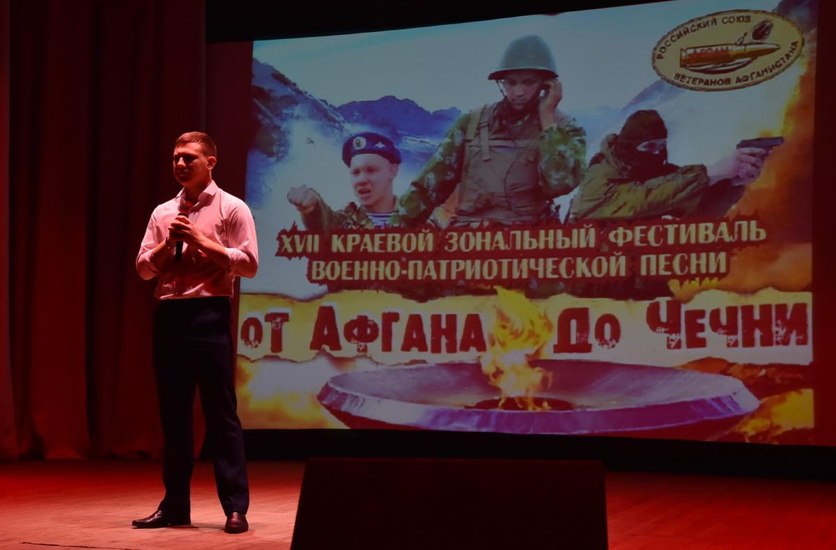 «От Афгана до Чечни» В течение месяца студенты педагогического колледжа принимают активное участие в мероприятиях, посвящённых месячнику оборонно- массовой и военно- патриотической работы, который ориентирован прежде всего на молодежь и призван формировать эмоционально-волевые качества гражданина - патриота России, воспитывать стремление к сохранению и преумножению военного, исторического и культурного наследия. Традиционно, в преддверии праздничной даты вывода войск из ДРА Славгородское отделение «Российский союз Ветеранов Афганистана» (РСВА) совместно с комитетом по культуре и молодежной политике администрации г. Славгорода проводит краевой фестиваль военно – патриотической песни «От Афгана до Чечни». Открыл фестиваль депутат АКЗС, председатель местного «РСВА» Иван Диркс. Также поприветствовали участников и зрителей фестиваля глава города Сергей Горбунов. В мероприятие приняли участие школьники, студенты и представители старшего поколения. Студенты педагогического колледжа исполнили песни о войне. Присутствующие в зале почтили минутой молчания память павших в Афганистане, Чечне и других локальных конфликтах. В завершении мероприятия Иван Диркс вручил участникам фестиваля памятные призы и дипломы, отметив, что участники фестиваля выступили достойно, профессионально и трогательно.