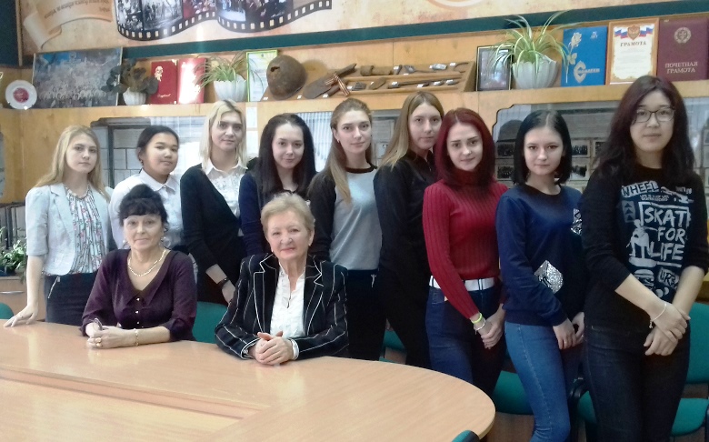 Встреча поколений В музее колледжа состоялась встреча студентов второго курса с ветераном педагогического труда Ольгой Васильевной Соловьёвой. В рамках педагогической практики под руководством методиста Олешко Татьяны Сергеевны, студенты подготовили фотоленту «Путь педагога», Стыцкова Александра ознакомила присутствующих с биографией учителя, Васюк Диана и Джамбулатова Асем прочитали стихи – посвящения педагогу. В ходе встречи Ольга Васильевна с огромной теплотой рассказала о годах учёбы в училище, дала комментарий каждой фотографии. С теплотой и с чувством глубокой благодарности поведала студентам о дорогих сердцу преподавателях, которые учили их и оказали влияние на всю дальнейшую жизнь! Конечно, дала молодому поколению советы и наказы, которые им могут помочь в жизни. Два часа общения пролетели незаметно и поэтому в конце встречи, было принято решение встретиться ещё раз, но встречу провести в необычной форме, где студенты смогут проявить свои творческие способности!
