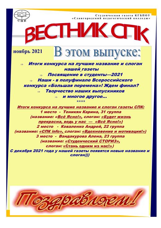 __________________________________________________________________________________________________________________________ главная страница основные сведения документы образование абитуриенту обратная связь _________________________________________________________________________________________________________________________ Электронная версия студенческой газеты СПК