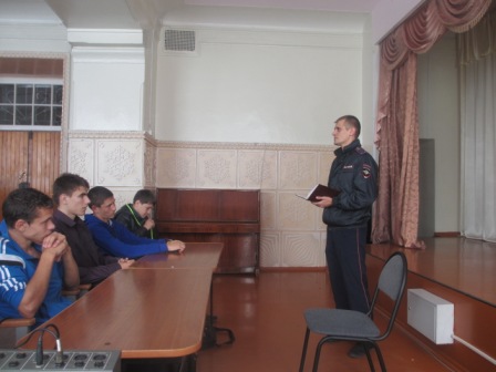 В рамках реализации «Комплексного плана мероприятий по организации правового воспитания несовершеннолетних Алтайского края» с целью профилактики правонарушений и преступлений в Славгородском педагогическом колледже для несовершеннолетних студентов была проведена встреча с инспектором ОДН МО МВД России «Славгородский» Е.А.Копыловым. Евгений Анатольевич рассказал студентам об административной и уголовной ответственности несовершеннолетних, о правилах поведения в общежитии, о реализации Закона Алтайского края № 99-ЗС «Об ограничении пребывания несовершеннолетних в общественных местах на территории Алтайского края». Затем инспектор ОДН провел беседу по профилактике табакокурения, употребления алкогольных напитков и наркотических веществ.