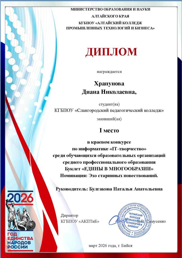 краевое государственное бюджетное профессиональное образовательное учреждение СЛАВГОРОДСКИЙ ПЕДАГОГИЧЕСКИЙ КОЛЛЕДЖ |